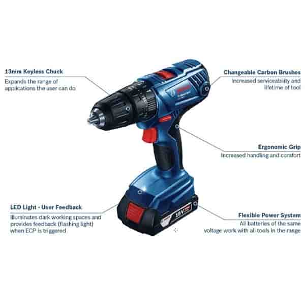 مزایای دریل پیچگوشتی شارژی چکشی بوش 18 ولت مدل GSB 180-LI