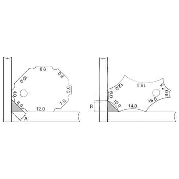 • دامنه  تحرب و تعقر جوش 4 ، 6 ، 7.5 ، 10 ، 12 ، 14 ، 16 و 18 میلی متر